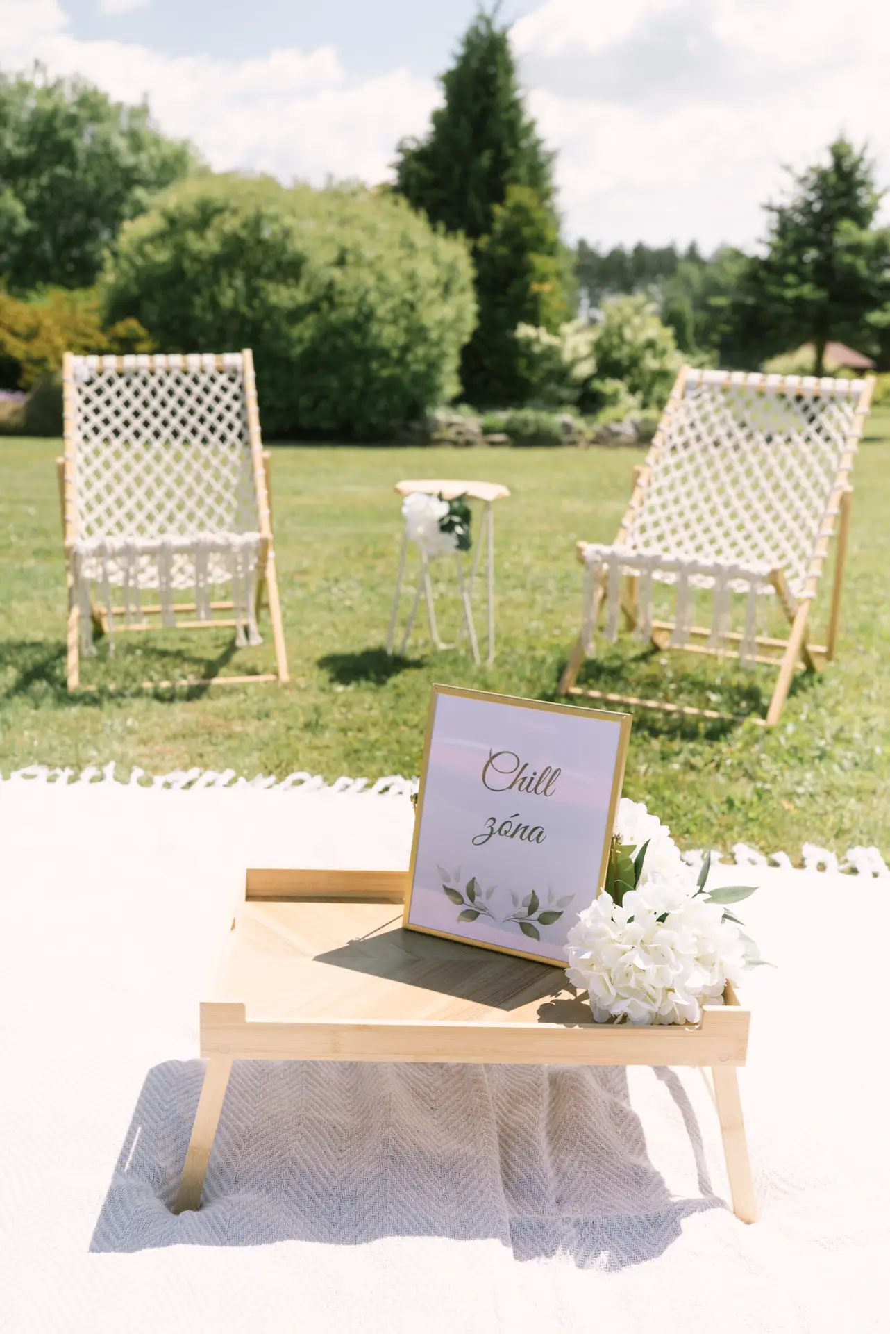 Chcete svým hostům dopřát chvíli klidu a pohodlí? Chill zóna je ideálním místem pro relax, neformální rozhovory i krátký odpočinek od dění kolem. Nabízíme stylové deky, měkké polštáře, pohodlná křesla a praktické stolky, které vytvoří útulnou a přívětivou atmosféru. Chill zóna se přirozeně stane oblíbeným koutem vaší události – ať už na svatbě, firemním eventu nebo letní oslavě pod širým nebem.